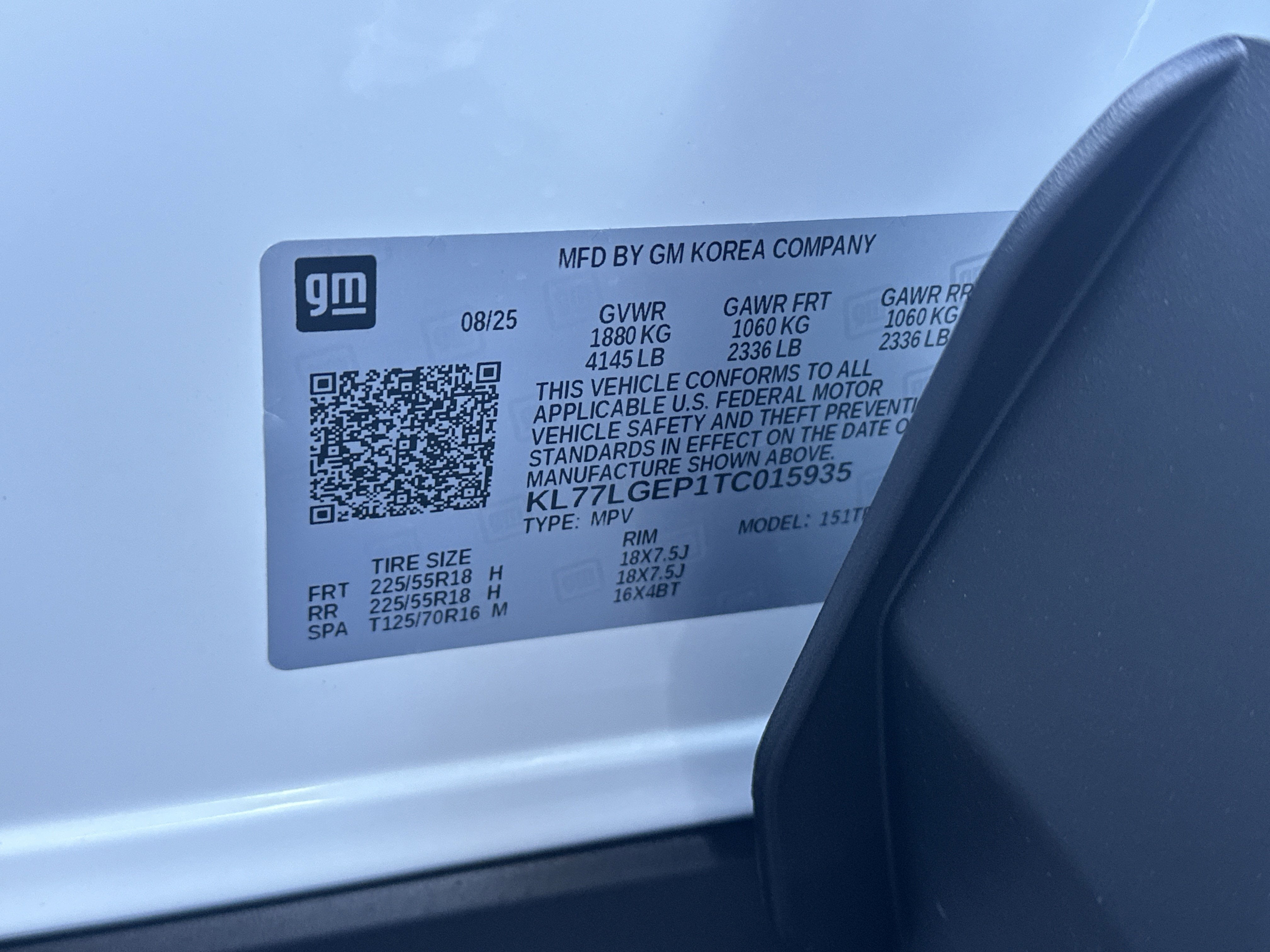 - Tires, 225/55R18 all-season, blackwall